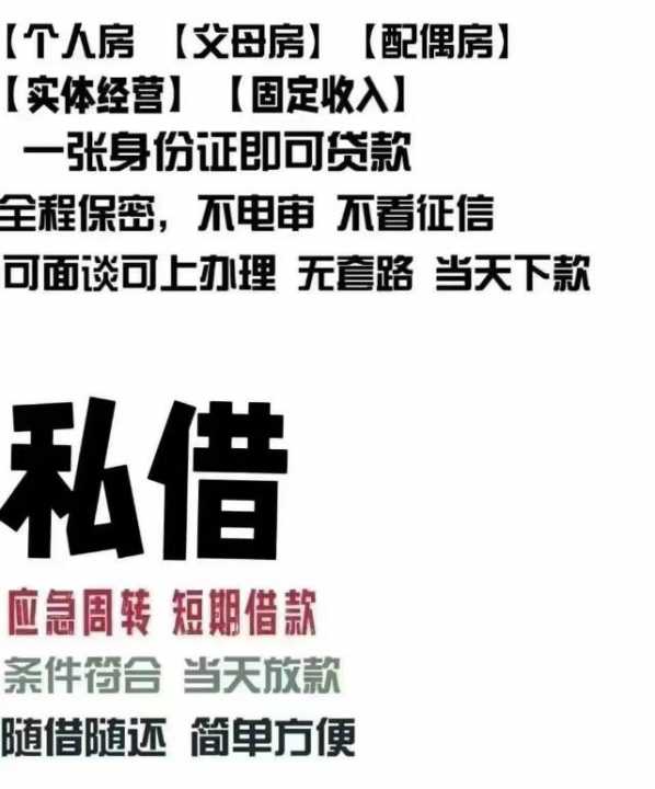 资金周转银行批不下来的,只要您手里有车子房子,都可以做个人对个人抵押借款,不看您的征信不看您的负债,我们只看您的抵押物,我们24小时营业,利息低,额度高,放款快,所有流程透明无任何套路。